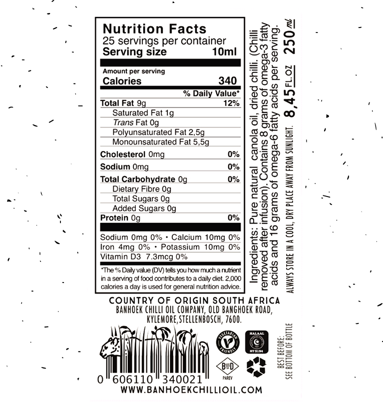Banhoek Chilli Oil is a 100% natural, premium-quality chilli-infused canola oil.